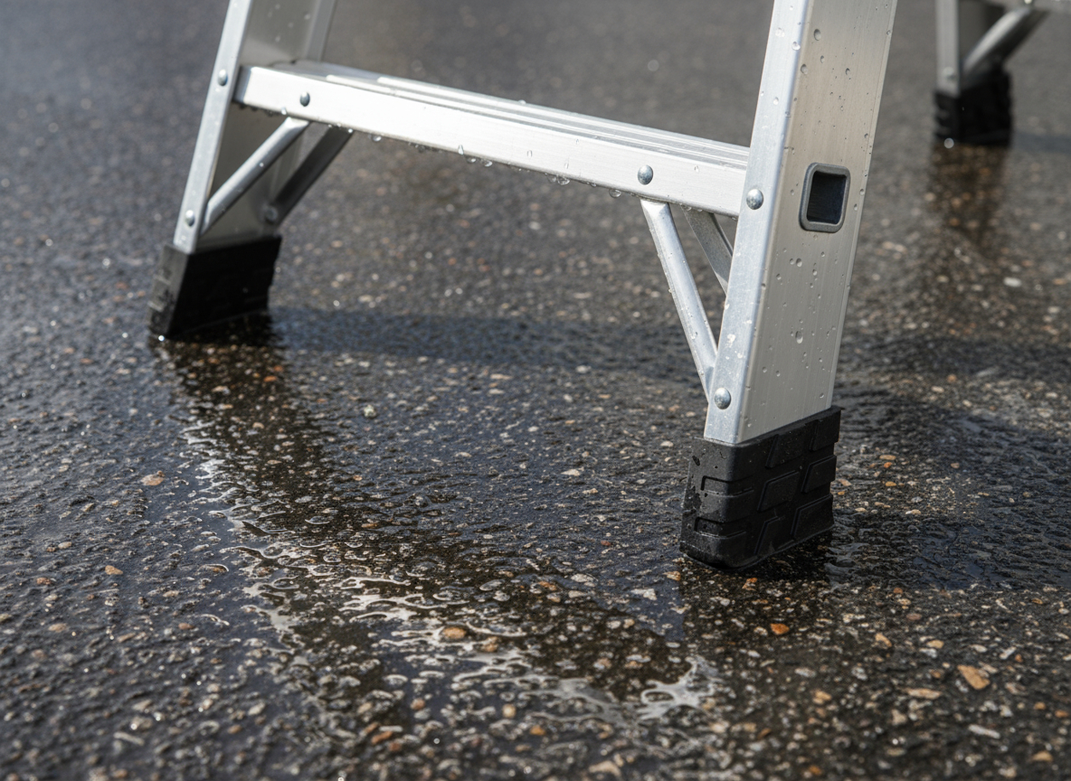 Sur gravillons, pavés ou en pente douce, une échelle pour laveur de vitres stable avec pieds réglables, élargisseurs et pointes amovibles garantit un appui contrôlé et limite le risque de glissement.