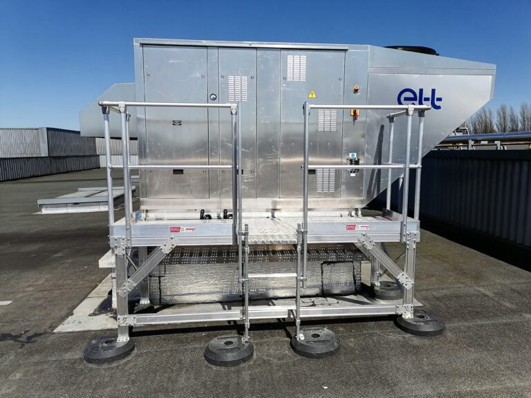 Au-delà des textes réglementaires, chaque plateforme roulante sécurisée est conçue pour limiter les risques de basculement, de glissade ou de mauvaise manipulation : stabilisateurs intégrés ou optionnels, roues équipées de freins, marches antidérapantes, plancher rigide à surface granitée.